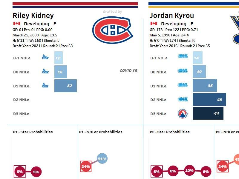 Une autre année comme celle-là pour Kidney, mais encore meilleure, le placerait sur une courbe de progression très similaire à celle de Jordan Kyrou, qui a amassé 75 points en 74 matchs avec les Blues de St. Louis en 2021-2022.