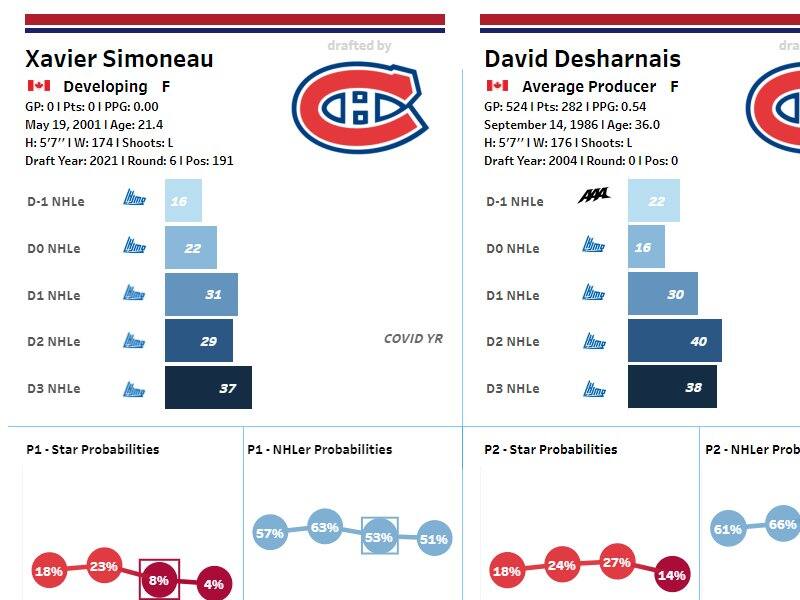 Le modèle de Bader, sans même s’intéresser aux mensurations des deux joueurs, voit des similitudes importantes entre Simoneau et David Desharnais.