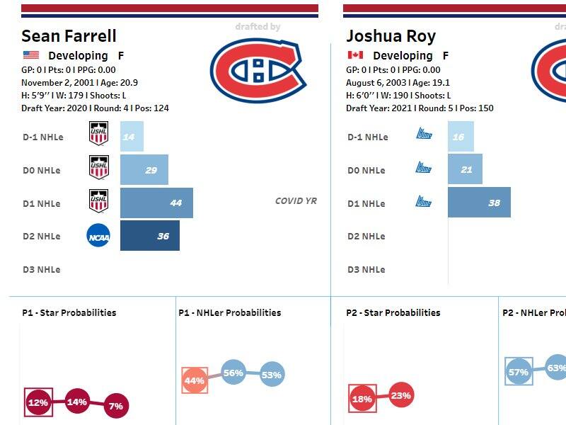 N’empêche, notre expert tenait à présenter les fiches de Roy et Farrell pour illustrer la progression constante dans leur développement – et le fait qu’ils pourraient tous deux s’avérer un vol par rapport à leur rang de repêchage.