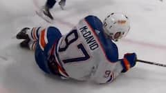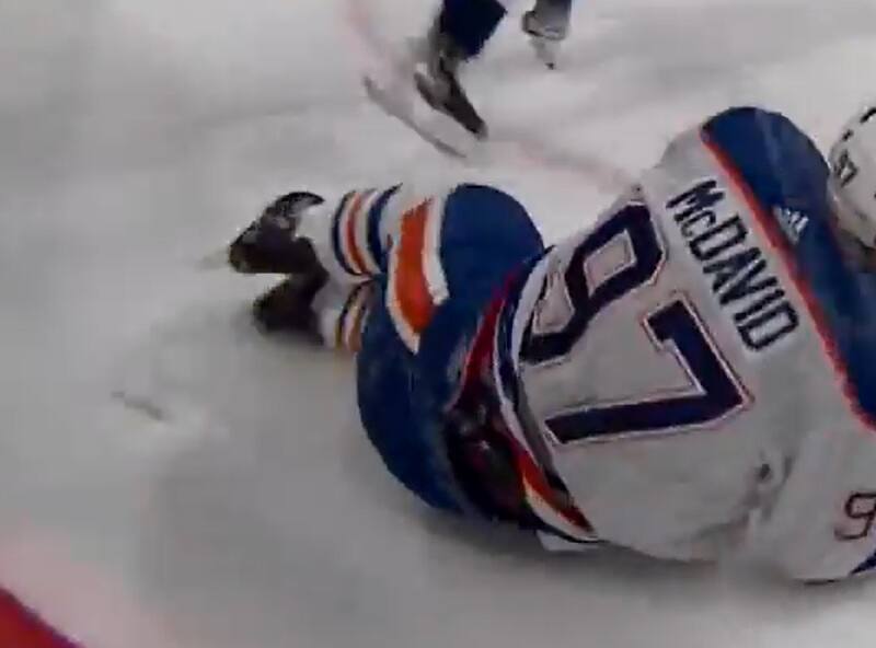 Lors de la fin de la deuxième période du duel contre les Jets, Connor McDavid s’est fait solidement frapper par Saku Maenalanen.