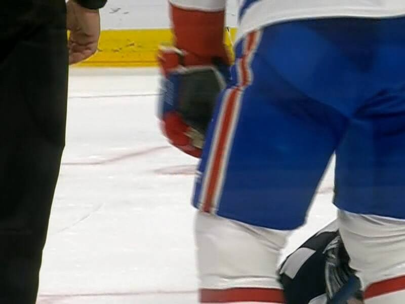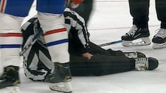 Le juge de lignes a fait une vilaine chute lorsqu’il a été entraîné sur la glace par une altercation entre Joel Edmundson et Marc Staal.