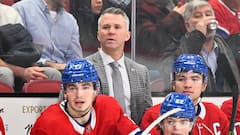 Engels place Alex Newhook à l’aile sur le premier trio, à droite de Nick Suzuki et de Cole Caufield. Dans ce scénario, Caufield et Newhook jouent donc tous deux hors l’aile.