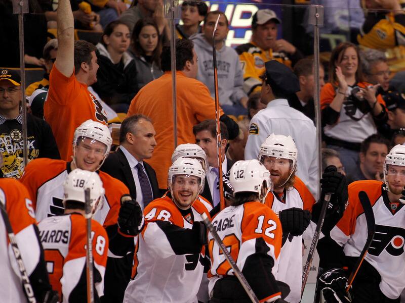 Dirigés par Claude Julien, les Bruins de Boston auraient pu retrouver le Canadien de Montréal en finale de l’Association de l’Est, mais leurs opposants du deuxième tour avaient d’autres plans et il a fallu le retour au jeu d’un joueur québécois bien connu pour renverser la vapeur. À l’écart du jeu pour les quatre rencontres précédentes à cause d’une fracture du pied, l’attaquant des Flyers Simon Gagné a marqué le but de la victoire en prolongation du match 4, avant de dénouer l’impasse au troisième vingt de la septième joute, un gain de 4 à 3 au TD Garden.
