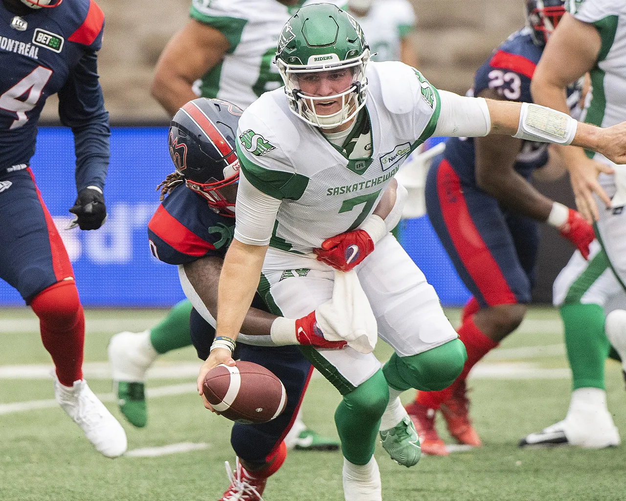 La seule chose que les Roughriders font à un niveau d’élite est de courir le ballon. Ils se classent au troisième rang de la LCF pour les verges par match (111) et au deuxième rang pour les verges par portage (5,3).