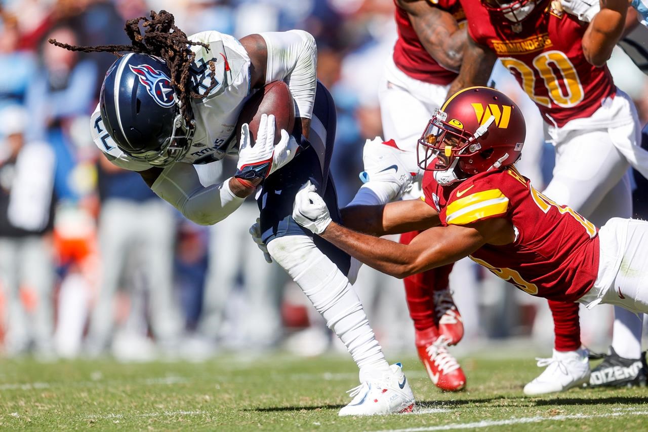 LANDOVER, Md. (AP) – Derrick Henry a couru pour 102 yards et un touchdown, et les Titans du Tennessee ont fait un stand de dernière minute sur la ligne de but pour battre les Commandants de Washington 21-17 dimanche, roulant vers leur semaine d’avertissement sur une série de trois victoires.