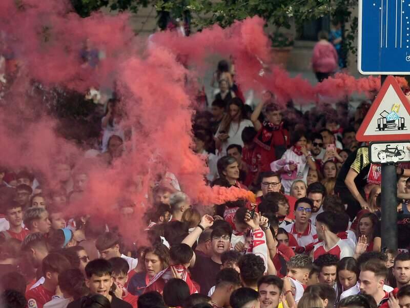 Des centaines de partisans du FC Séville se sont présentés à Bucarest pour assister à la finale de la Ligue Europa de soccer, alors que le club espagnol affrontait les Italiens de l’AS Rome à Budapest.