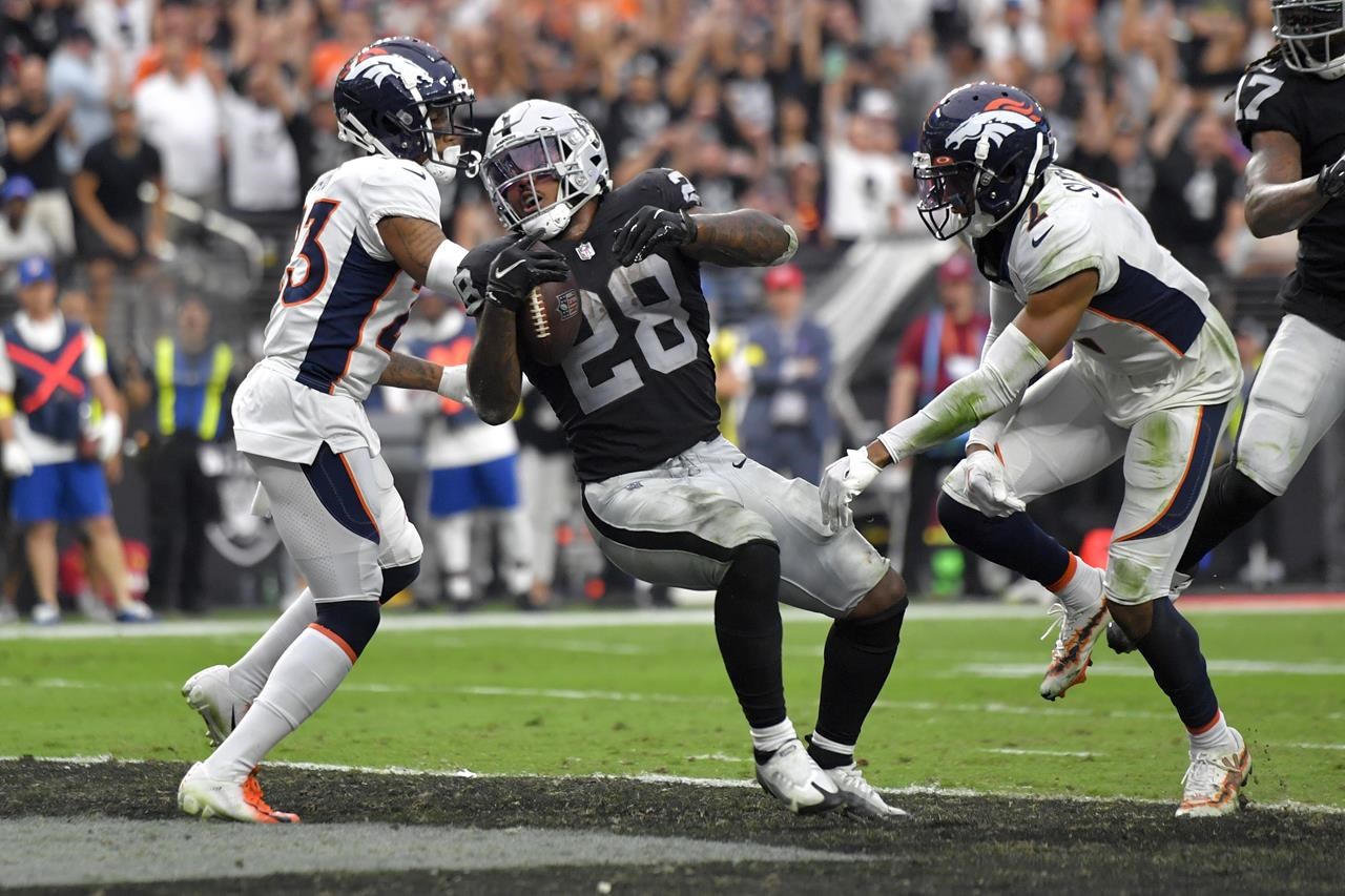 Jacobs a couru pour un total de 144 yards et deux touchdowns lors de la victoire 32-23 de Las Vegas sur Denver, le rival de l’AFC West.