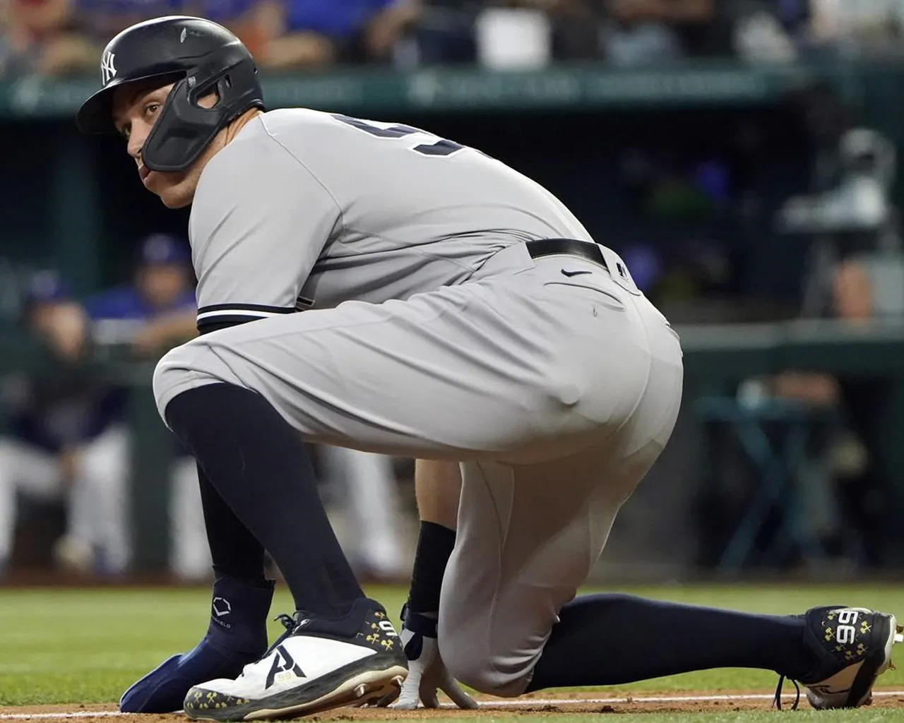 ARLINGTON, Texas (AP) – Aaron Judge a claqué son casque dans une rare démonstration de frustration et le cogneur des Yankees est resté à 61 home runs avec seulement deux matchs restants pour battre le record de l’AL après que New York ait battu le Texas 5-4 mardi en ouverture d’un programme double jour-nuit.