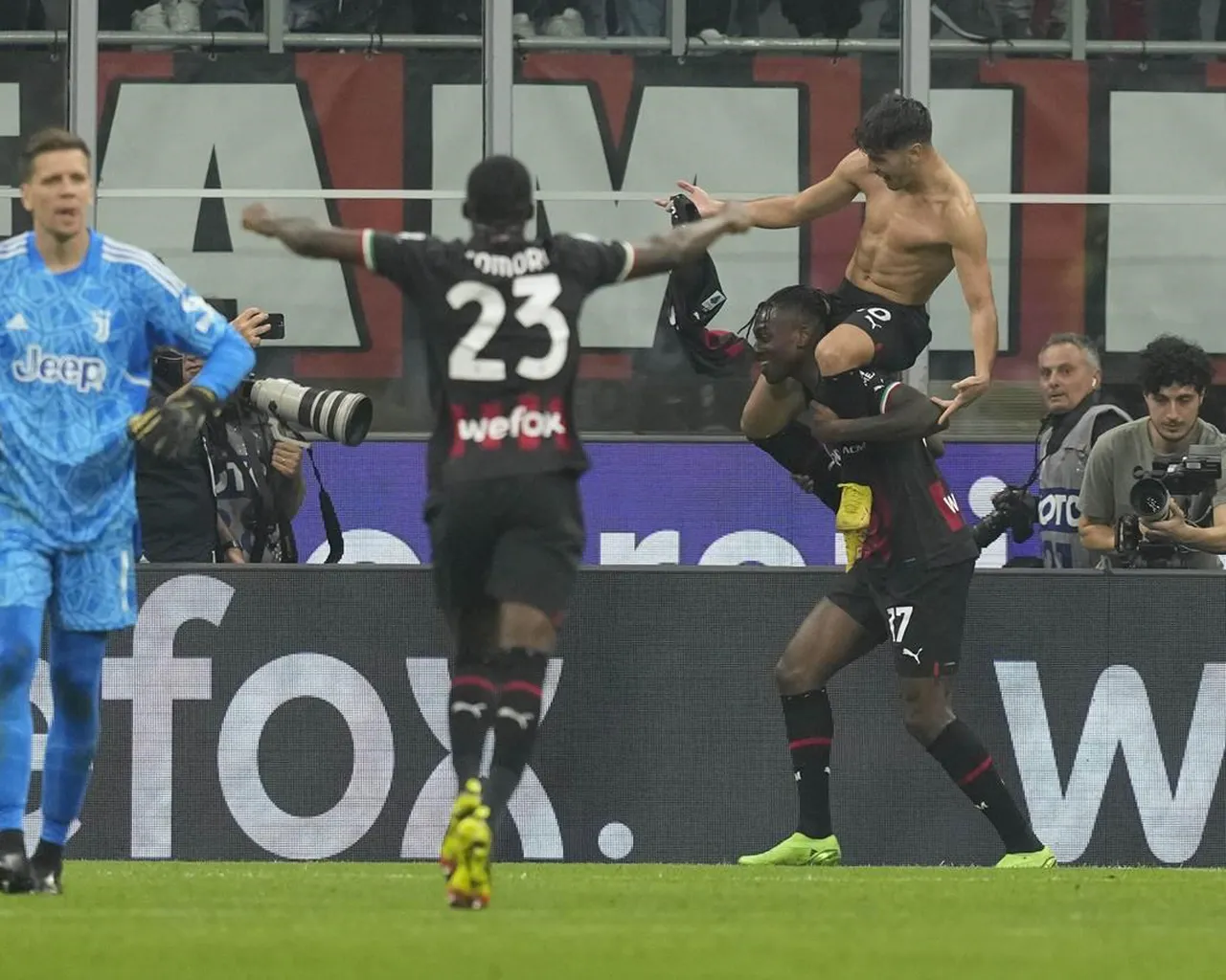 San Siro, bondé, a explosé de joie et Díaz a enlevé son maillot avant d’être hissé sur les épaules de son coéquipier Rafael Leão.