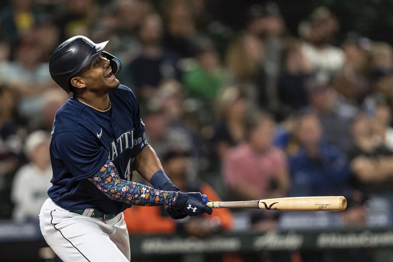 Il a frappé un simple de 110,1 mph au milieu en début de première, a avancé lorsque Ty France a été frappé par un lancer et a égalisé le score à 1 lorsqu’il a avancé d’une base sur des flyouts de Mitch Haniger et Eugenio Suárez.