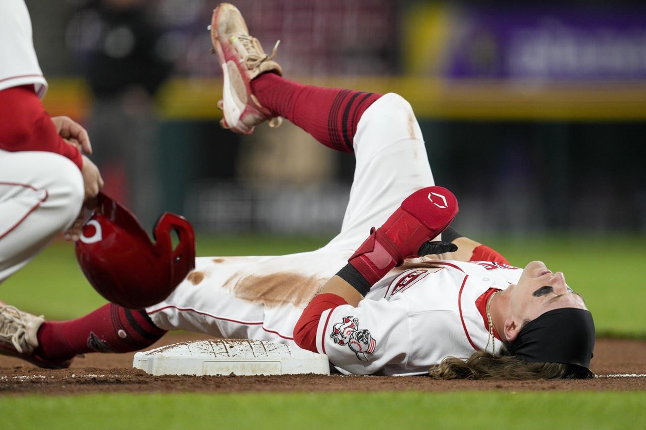 Reds : Friedl a été aidé à quitter le terrain avec une blessure apparente à la jambe après avoir été retiré en essayant de voler la troisième base dans la troisième manche.