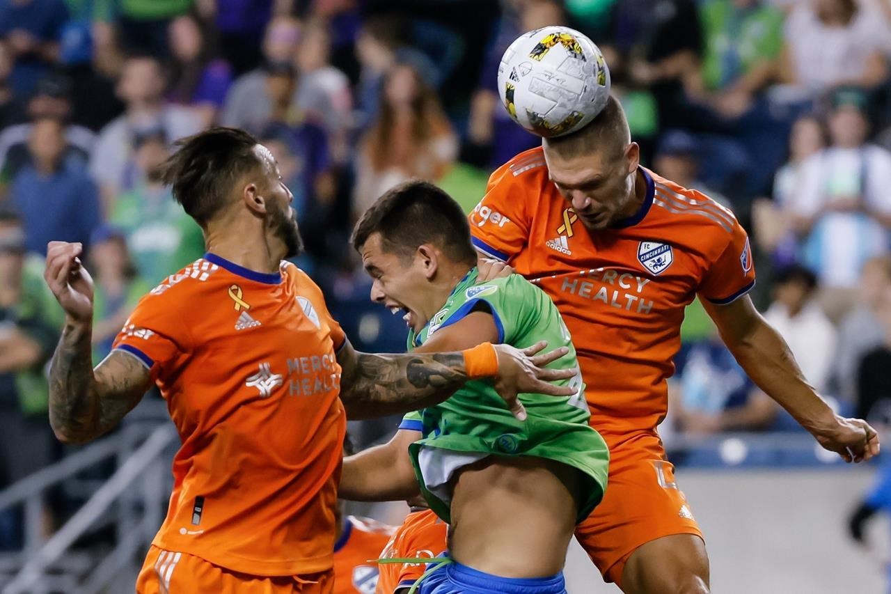 Cincinnati a eu une occasion majeure de quitter Seattle avec une victoire, mais le gardien des Sounders, Stefan Frei, a réalisé un arrêt à bout portant devant le filet à la 76e minute, après que Seattle ait été réduit à 10 suite au carton rouge reçu par Kelyn Rowe.