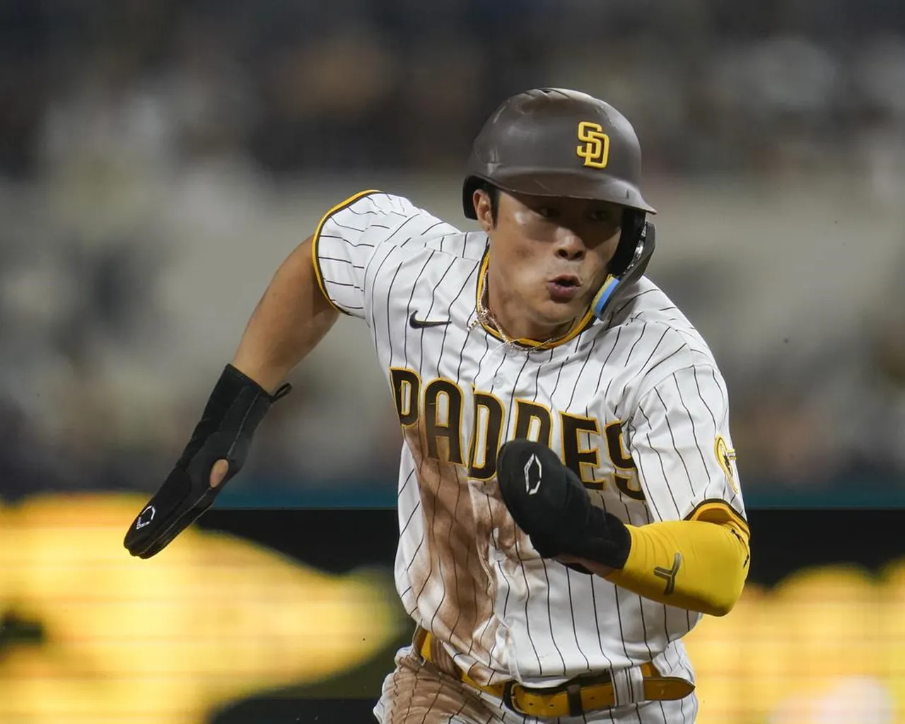 Ha-Seong Kim, des Padres de San Diego, passe de la deuxième à la troisième manche lorsque Juan Soto est retiré au sol lors de la première manche d’un match de baseball contre les Giants de San Francisco, lundi 3 octobre 2022, à San Diego. 3, 2022, à San Diego.