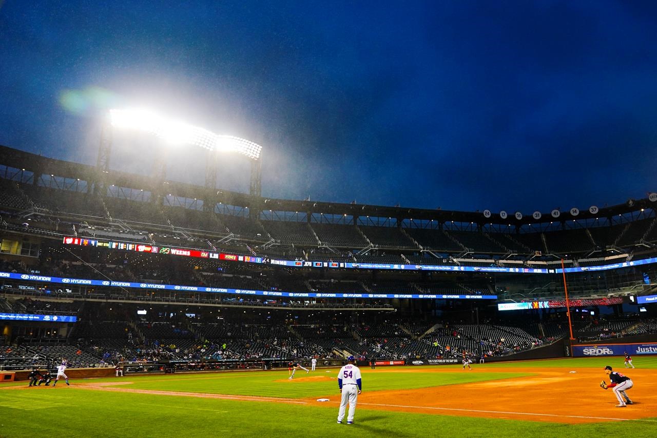 Le programme double au Citi Field a débuté dans des conditions sommaires devant une foule clairsemée qui comprenait quelques chiens dans le cadre d’une promotion “Bark in the Park” et a subi la pluie pendant les trois dernières manches.