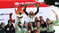 «Après la course, j’ai vécu de beaux moments quand les membres de l’équipe m’ont soulevé pour célébrer, d’ajouter la skieuse de 26 ans. C’était tellement cute que j’ai pleuré.»
