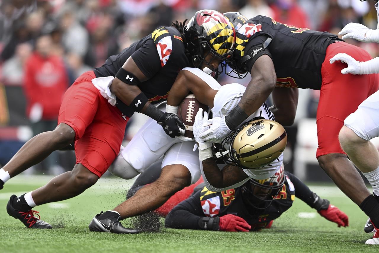 Les deux équipes sont restées sans score en deuxième mi-temps jusqu’à une fin sauvage comprenant quatre touchdowns dans les 7:47 dernières minutes. Maryland semblait avoir égalisé lorsque Taulia Tagovailoa a trouvé Rakim Jarrett dans le coin de la zone d’en-but pour une conversion de 2 points dans la dernière minute, mais le lineman offensif Delmar Glaze a été signalé pour une pénalité d’homme inéligible en bas du terrain, et Tagovailoa a lancé de manière incomplète sur la tentative suivante.