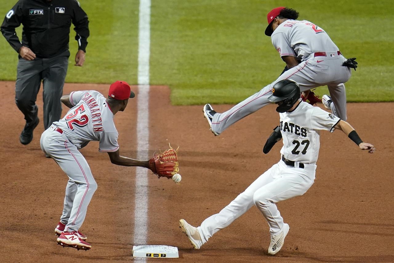 Bryan Reynolds s’est ensuite rendu sur la deuxième base pour ce qui aurait pu être un double jeu de fin de manche. Au lieu de cela, le shortstop Jose Barrero a pris l’échange et a envoyé le lancer au premier dans l’abri de Cincinnati, faisant entrer Collins.