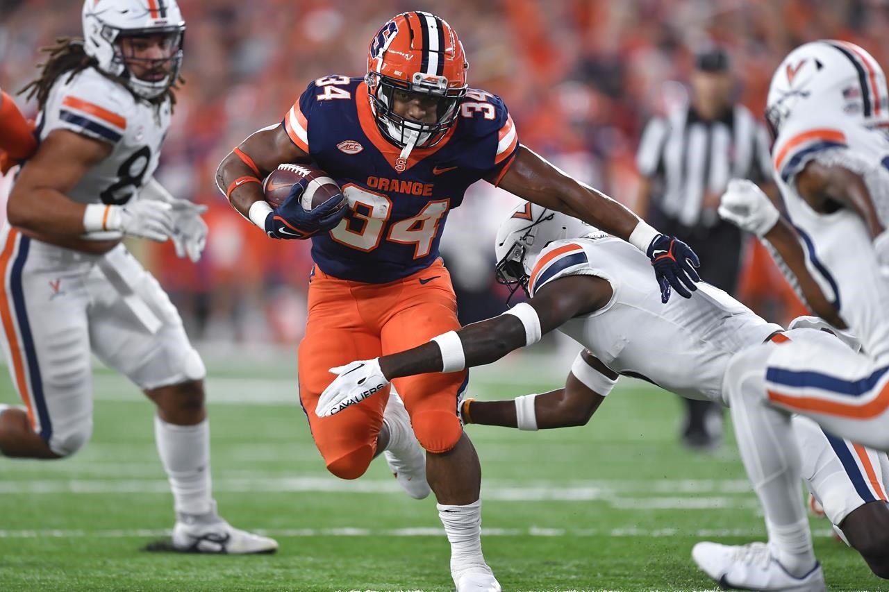 Un de ces gars est l’arrière All-American Sean Tucker, qui a une moyenne de 6,1 verges par course et a obtenu un record scolaire de 1 496 verges de course la saison dernière. Il a couru pour 546 yards et cinq touchdowns et a attrapé 19 passes pour 184 yards et un autre score cette année, bien que contre les trois adversaires du Power 5 que l’Orange a battus, il n’a obtenu qu’une moyenne de 3,36 yards sur 60 portées.