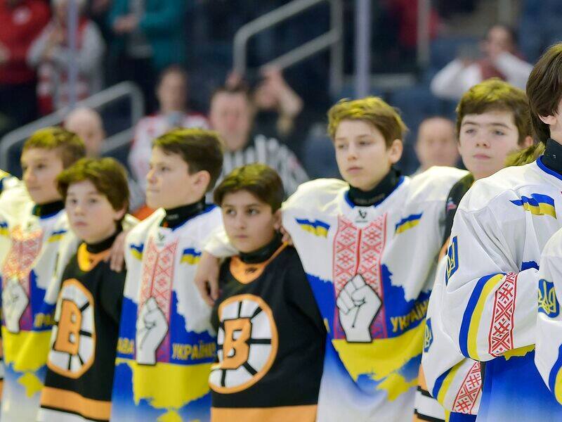 La scène était frappante. Bras dessus, bras dessous, les joueurs de Team Ukraine Select et des petits Bruins de Boston écoutaient, solennels, les hymnes nationaux de leurs deux pays respectifs. Un autre signe que le match tant attendu de samedi au Tournoi pee-wee de Québec, allait bien au-delà du hockey.