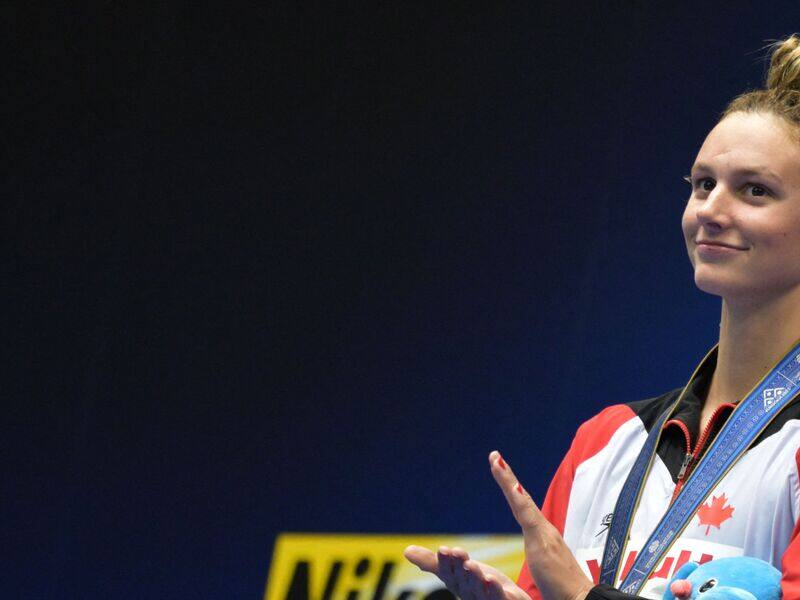 La Canadienne de seulement 16 ans décroche un quatrième titre individuel mondial, le deuxième au Japon après le 200m papillon où elle avait battu son propre record du monde junior.